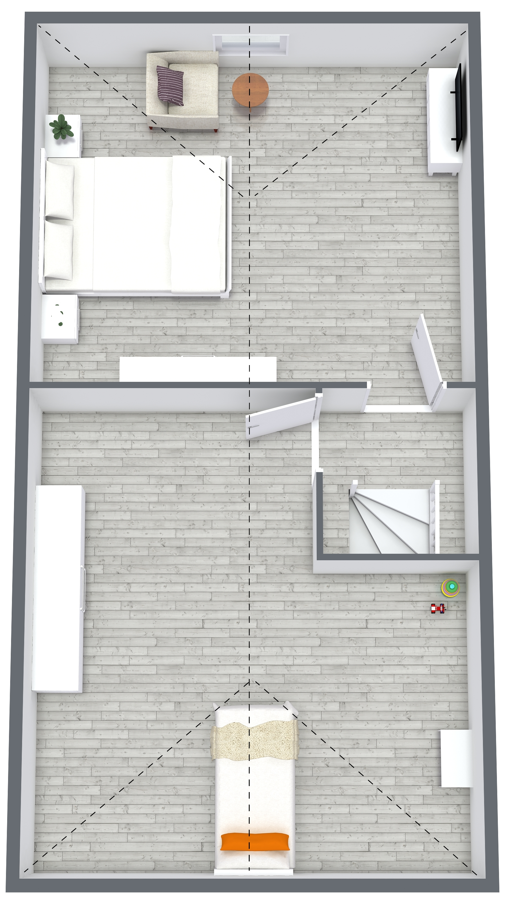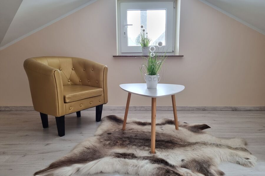Im Spitzboden gibt es zusätzlich eine weitere Schlafmöglichkeit sowie ein geräumiges Spielzimmer.