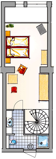 Im OG. befindet sich ein Schlafzimmer mit Doppelbett (1,80 m breit) mit Flachbild-TV, sowie einen sehr bequemen Schlafsessel.