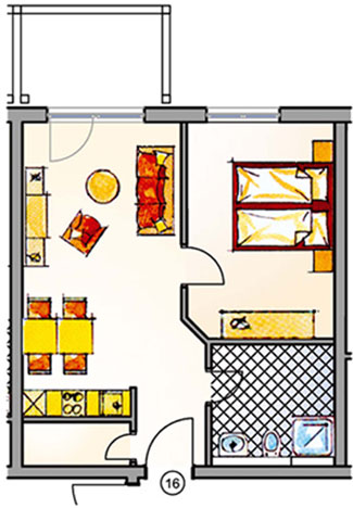 - Wohn/Schlafraum kombi.