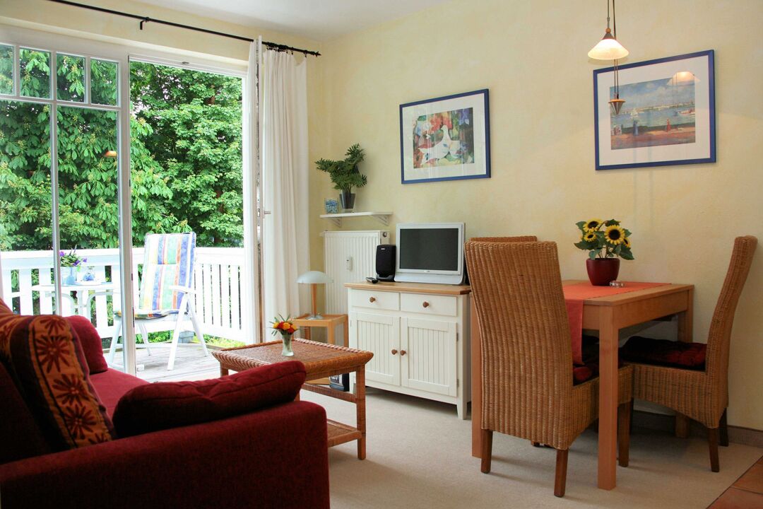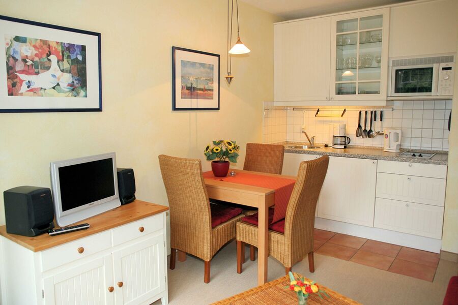 Die Wohnung befindet sich im Haus 2 der Anlage im 1.Obergeschoss,ist ruhig gelegen und für 3 Erwachsene oder 2 Erwachsene und 2 Kleinkindern ( bis 4 Jahren ) ausgestattet.